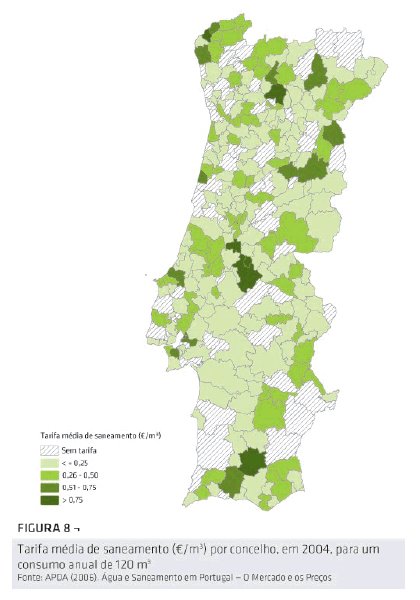 Se consultarmos agora o estudo elaborado pela Associação Portuguesa de Abastecimento e Drenagem de Água o que verificamos que a tarifa média de abastecimento de água (€/m_) em 2004, para um consumo anual de 120 m_ situava-se entre 0,75 e 1,00 euros e era UMA DAS MAIS ELEVADAS DA REGIÃO.